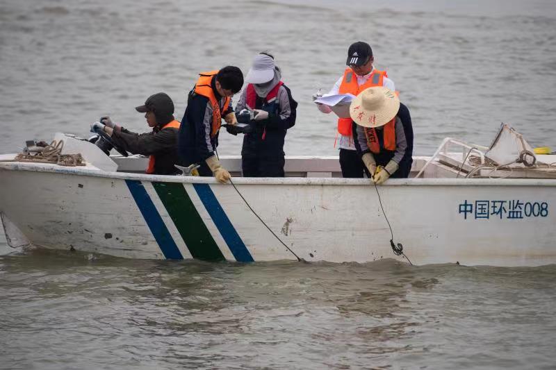 監(jiān)測(cè)人員正在進(jìn)行水生態(tài)環(huán)境現(xiàn)場(chǎng)參數(shù)測(cè)定(2023年5月13日攝)。新華社記者肖藝九 攝