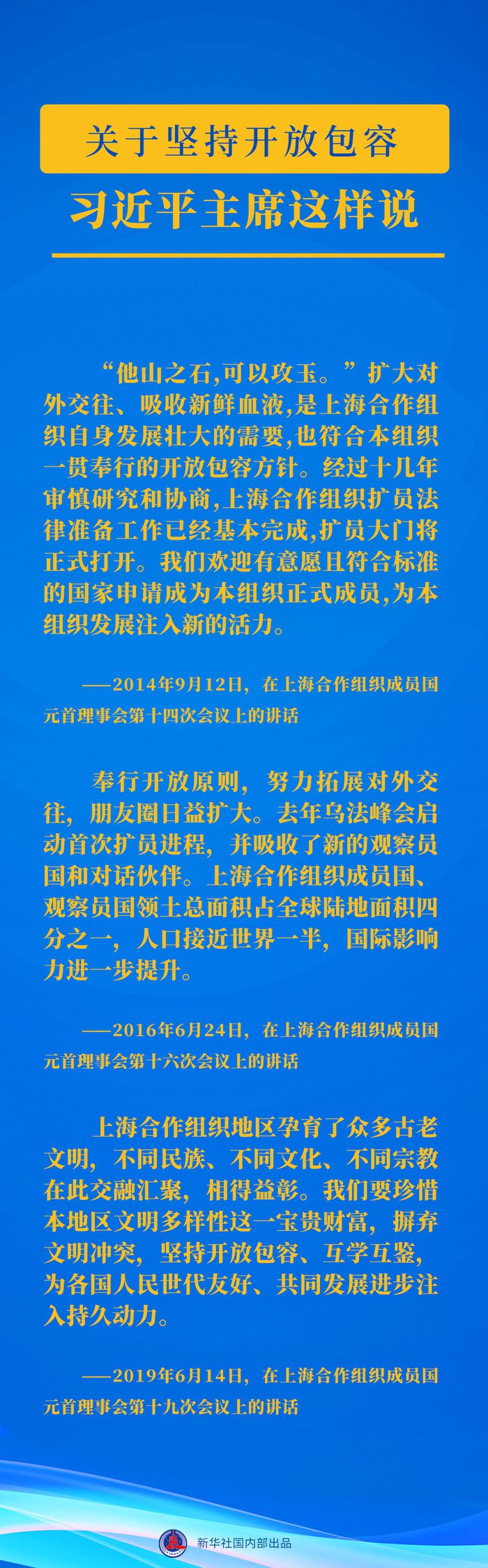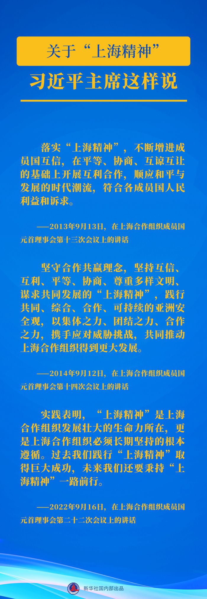 自2013年起,習(xí)近平主席已連續(xù)10年出席上合組織峰會(huì)并發(fā)表重要講話。習(xí)近平主席關(guān)于上合組織發(fā)展的這些重要論述,讓我們一起學(xué)習(xí)領(lǐng)悟↓