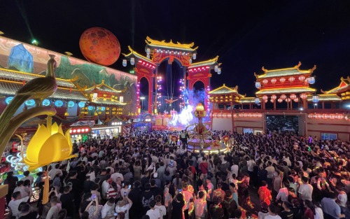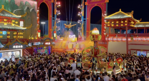 一步一景,燈火爛漫。巨大的山海經(jīng)神獸,隨著燈光效果的變換而變幻動作,沉浸式游玩體驗(yàn)感瞬間拉滿。似夢如幻的聲光電科技特效,華美綺麗的演出陣容,人氣爆棚的中外美食、驚險刺激的游玩設(shè)施,為游客帶來多重體驗(yàn)。國潮風(fēng)范的游玩街區(qū),展開一幅奇幻美妙山海經(jīng)神話的恢弘畫卷,吸引著各地游客前來打卡。