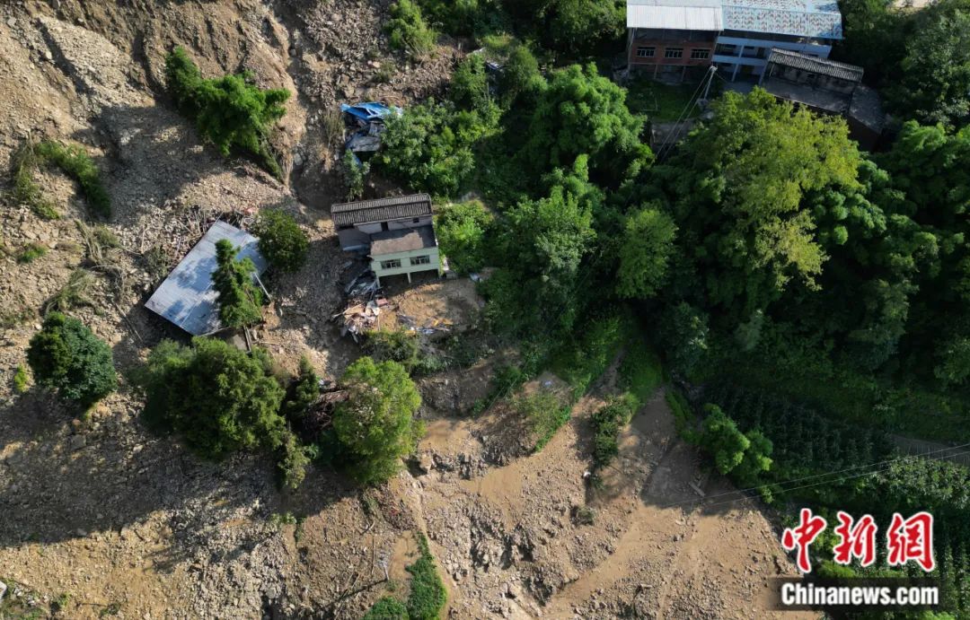 航拍重慶萬州長灘鎮(zhèn)一村莊山坡發(fā)生泥石流災(zāi)害后的場景。陳超 攝