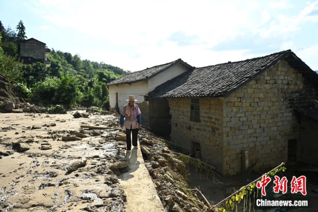 沒多久,家里傳來一聲垮塌的聲音。李謀根心疼家中財物,雖然猶豫了一下,但還是沖進(jìn)家中查看,發(fā)現(xiàn)家中一面墻被沖了一個大窟窿,鞋子、盆子等物品順著水流沖向遠(yuǎn)方。這時,更大一聲垮塌聲傳出,李謀根轉(zhuǎn)身來到隔壁庫房,發(fā)現(xiàn)一面墻垮了一半?!澳倪€敢拿東西啊,我直接跑出庫房回到院壩中。”李謀根對記者說,他事后返回現(xiàn)場看見,這次響聲是混雜著更多淤泥的山洪沖垮了庫房,還沒消退的淤泥,在他院中將近齊腰深。