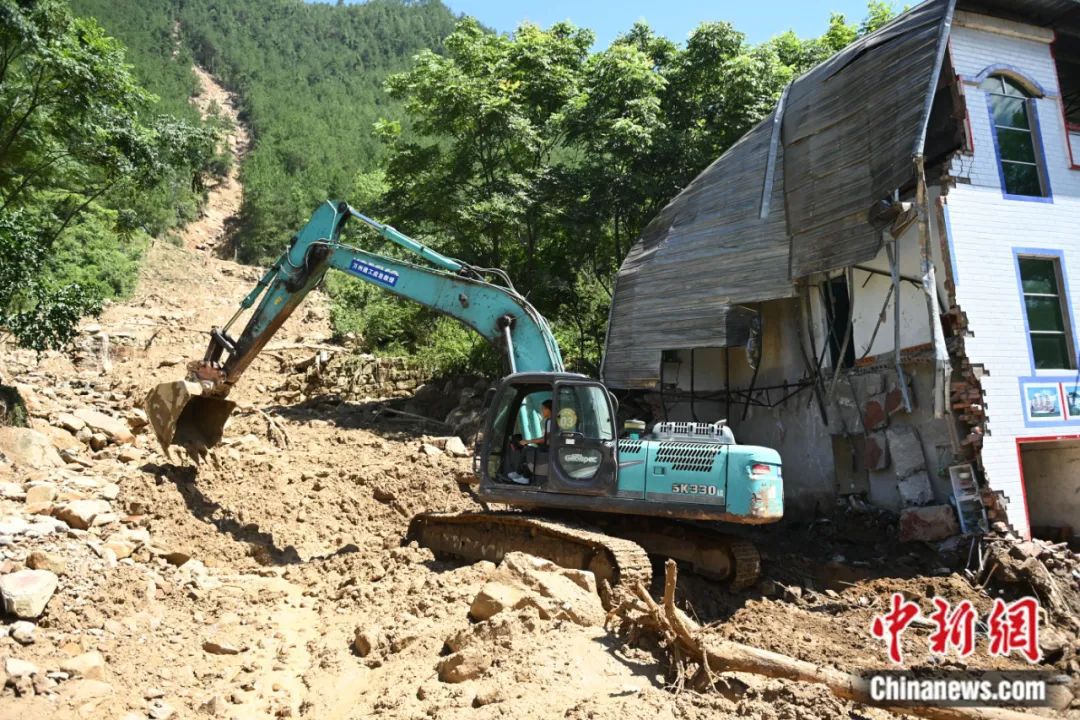 中新社記者在萬州長灘鎮(zhèn)另一處受災(zāi)的林場村看見,多處公路出現(xiàn)邊坡垮塌,部分道路已中斷。在長灘鎮(zhèn)林場村6組,3處泥石流從居民區(qū)沖過,部分房屋被沖毀。居民區(qū)背后山上,泥石流將山體撕出三道超百米長的傷痕,幾棵直徑約30厘米的樹木被連根沖到山下。還沒有來得及清理的泥石流中,混雜著大塊巖石,以及床墊、衣服等物品。挖掘機(jī)正在清理被泥石流沖毀的路面,武警、消防、應(yīng)急等救援隊伍在一處被沖毀的房屋附近搜救。