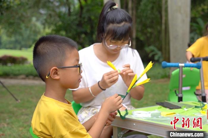 圖為親子體驗美人蕉手工制作?!№f國政 攝