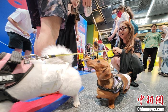8日,在天津“寵物友好”商場(chǎng)和平印象城,一場(chǎng)“狗狗聚會(huì)”吸引眼球:近30個(gè)品種的50余只狗狗身著可愛(ài)裙裝,佩戴裝飾,穿好寵物紙尿褲,享用過(guò)特制“狗狗蛋糕”后,隨主人打卡店鋪、逛街社交,成為商場(chǎng)一道亮麗風(fēng)景。