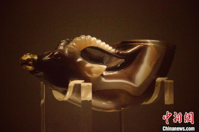 資料圖:陜西歷史博物館館藏文物唐獸首瑪瑙杯。 張一辰 攝