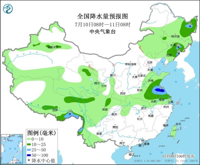 8日至10日,江淮、江漢、江南北部、重慶、貴州中北部以及內(nèi)蒙古東部、東北地區(qū)南部、西藏東南部等地有中到大雨,江蘇、安徽、湖北以及貴州、重慶等地的部分地區(qū)有暴雨,局地有大暴雨;上述部分地區(qū)伴有短時(shí)強(qiáng)降水、雷暴大風(fēng)或冰雹等強(qiáng)對流天氣。