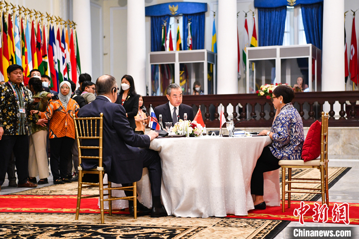 當(dāng)?shù)貢r間7月12日,中國、俄羅斯、印尼在雅加達(dá)舉行三方會晤。中央外辦主任王毅出席會議。 中新社發(fā) 徐欽 攝