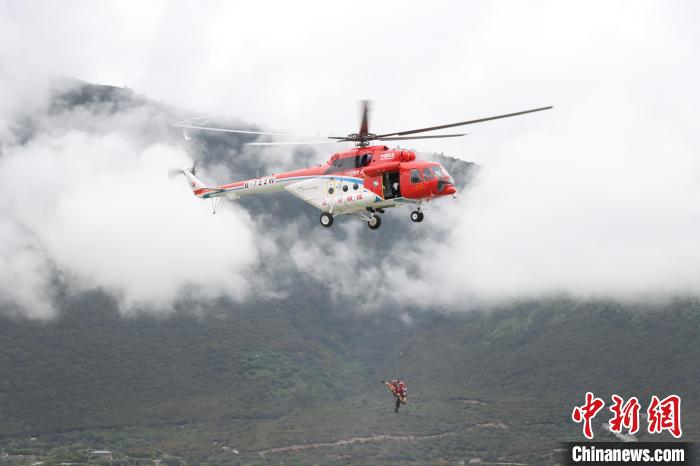 圖為直升機(jī)演練轉(zhuǎn)運(yùn)傷員?!∥骼@拉翁 攝