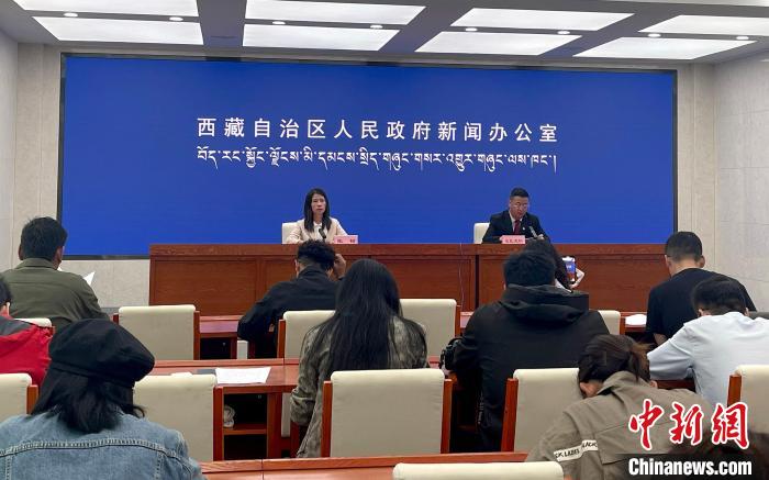 圖為7月12日,西藏自治區(qū)人民政府新聞辦公室召開的新聞發(fā)布會(huì)現(xiàn)場?!「裆@贰z