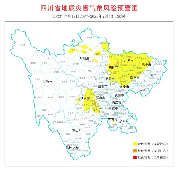 中新網(wǎng)成都7月12日電(楊予頔)7月12日,四川省地質(zhì)災(zāi)害指揮部辦公室發(fā)布全省地災(zāi)氣象風(fēng)險預(yù)警,根據(jù)四川省地質(zhì)環(huán)境條件,結(jié)合四川省氣象臺天氣預(yù)報情況,7月12日20時至7月13日20時,四川省地質(zhì)災(zāi)害氣象風(fēng)險預(yù)警為黃色預(yù)警和橙色預(yù)警。