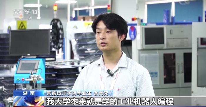常德技師學(xué)院畢業(yè)生佘高充:我大學(xué)本來(lái)就是學(xué)的工業(yè)機(jī)器人編程,專(zhuān)業(yè)還算比較對(duì)口,通過(guò)校企合作這種方式,我實(shí)現(xiàn)了畢業(yè)即就業(yè),現(xiàn)在工作模式和節(jié)奏已經(jīng)完全適應(yīng)了,感覺(jué)挺好的。
