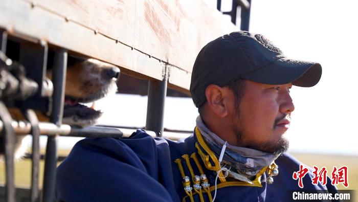 圖為“90后”牧民鋼蘇勒德在轉(zhuǎn)場途中休息?!〈薏┤?攝