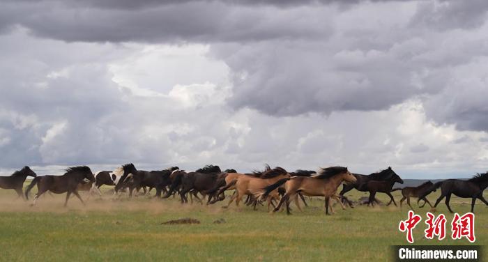 圖為駿馬在草原上飛馳?!〈薏┤?攝