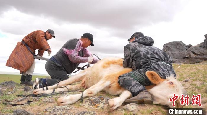 圖為鋼蘇勒德等人為難產(chǎn)的母牛“助產(chǎn)”?!〈薏┤骸z
