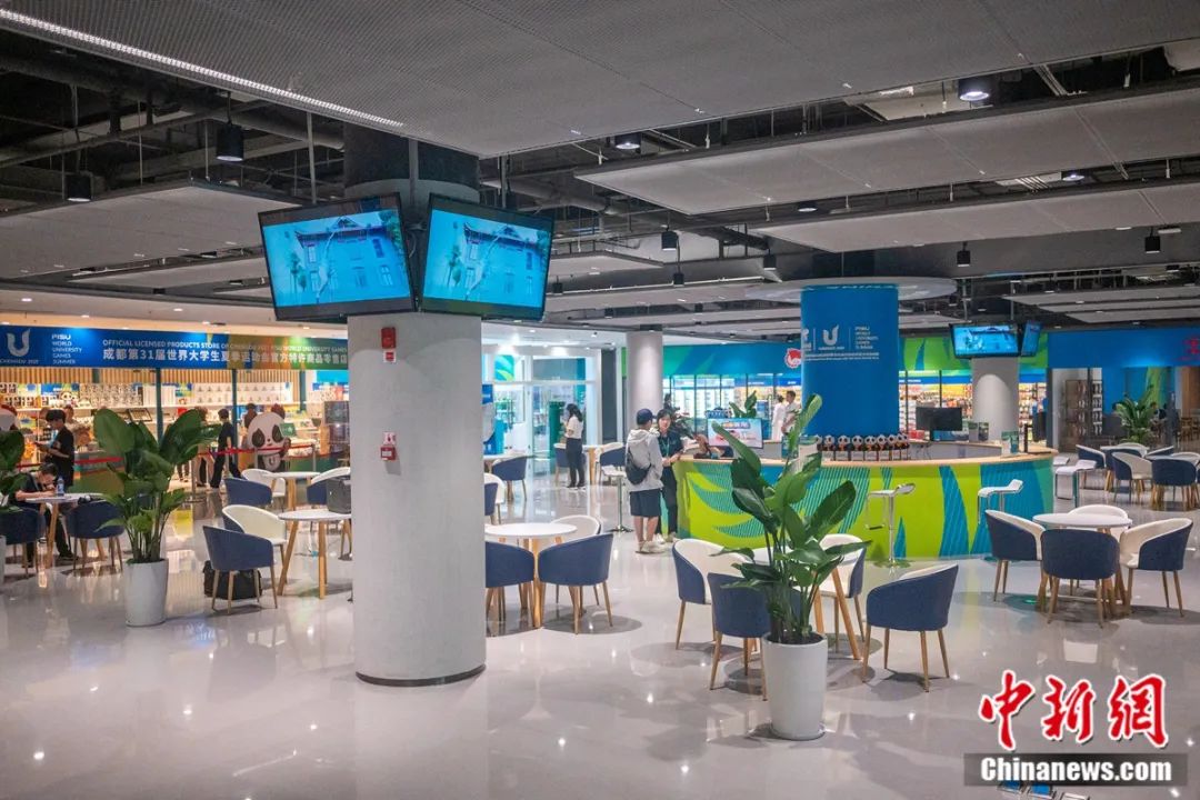 另外,主新聞中心還設(shè)置有醫(yī)療站、閱讀角、成都大運(yùn)會(huì)官方特許商品零售店、郵局、自助銀行區(qū)等配套服務(wù)區(qū)。