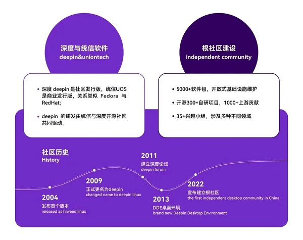 自2022年5月18日,深度社區(qū)宣布建設國內首個桌面操作系統(tǒng)根社區(qū)以來,已經(jīng)構建起基于Linux Kernel和其他開源組件的Linux根社區(qū),通過參與開源社區(qū)上游軟件的開發(fā)和維護工作逐步吸收并掌握其核心技術為我所用。