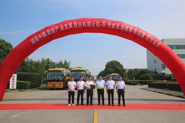 2023年7月12日上午,“湖南中騰旅游產(chǎn)業(yè)發(fā)展股份有限公司—蘇州金龍海格客車批量交付儀式”成功舉辦。21輛蘇州金龍海格KLQ6121H海悅高端豪華大巴奔赴湖南,以更安全、更舒適、更高效、更智能的客運(yùn)服務(wù)為湖南旅游高質(zhì)量發(fā)展賦能。