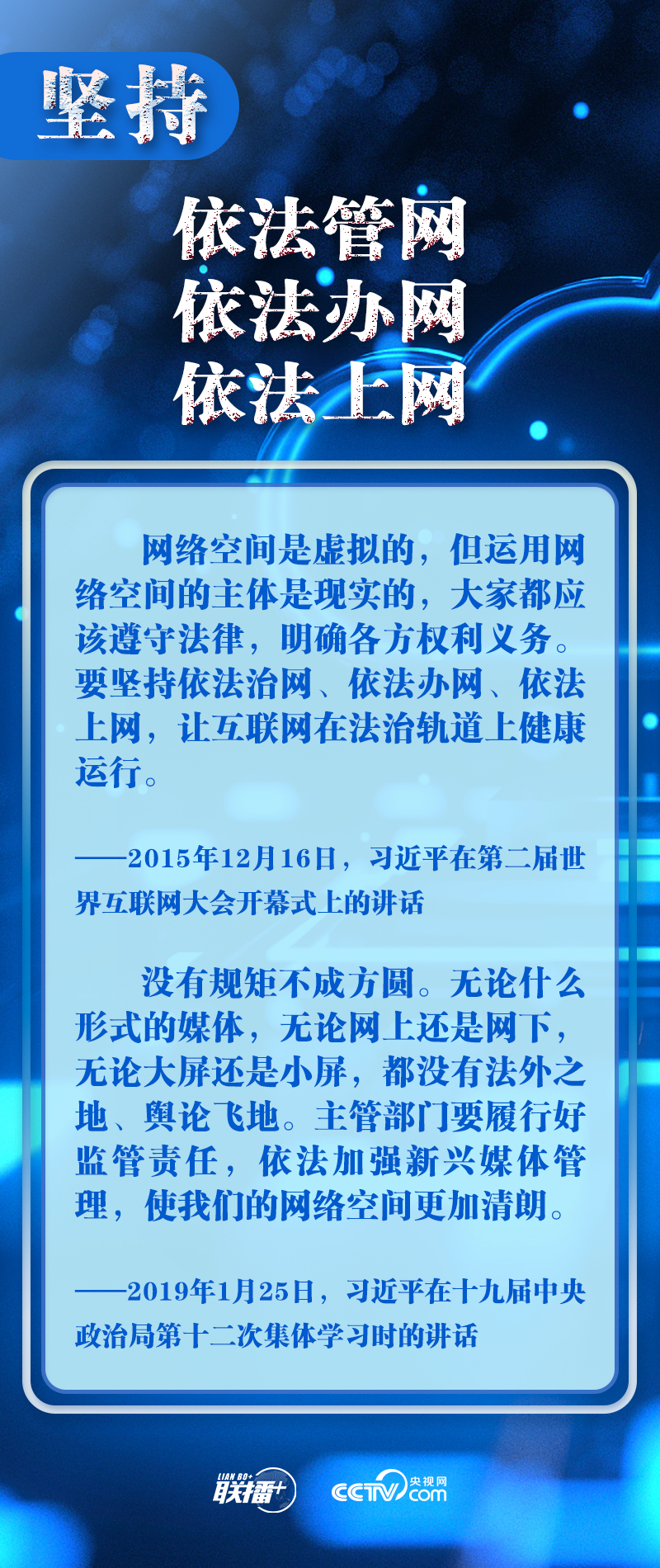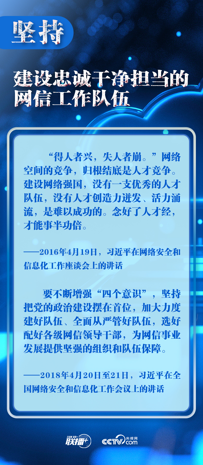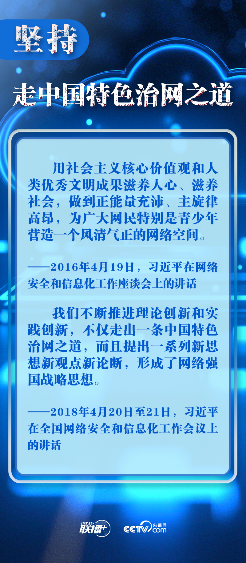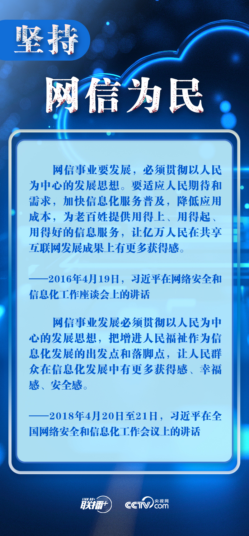 新時(shí)代新征程,網(wǎng)信事業(yè)的重要地位作用日益凸顯。央視網(wǎng)《聯(lián)播+》欄目圍繞總書記提出的十個(gè)“堅(jiān)持”,與您一起學(xué)習(xí)總書記關(guān)于網(wǎng)絡(luò)安全和信息化工作的重要思想。