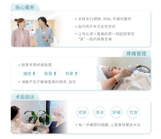 作為真正關(guān)注女性成長(zhǎng)的醫(yī)美,為了讓更多求美者可以美的安心、放心、舒心,智美也將遵循科學(xué)的管理體系,陪伴高知女性探索美,以科技之能修飾真我本色,以優(yōu)雅之力賦予生命本色。