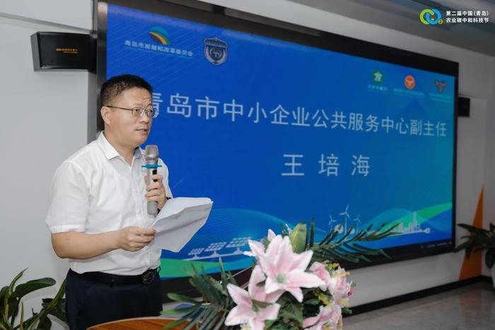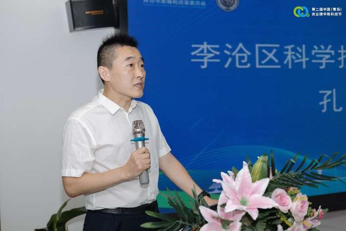 青島市中小企業(yè)公共服務(wù)中心副主任王培海,李滄區(qū)科學(xué)技術(shù)局副局長孔強(qiáng),青島農(nóng)業(yè)大學(xué)農(nóng)學(xué)院副院長、臨沂市平邑縣掛職科技副縣長張恩盈(線上)出席科技節(jié)并致辭。