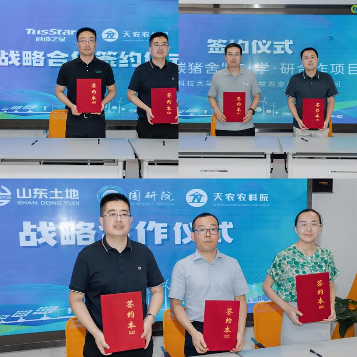 在開幕式上,山東新時(shí)代賣碳翁科技集團(tuán)有限公司、北京博雅國研信息科學(xué)研究院、北京天農(nóng)農(nóng)業(yè)科學(xué)院有限公司簽訂戰(zhàn)略合作;青島啟迪未來科技服務(wù)有限公司與北京天農(nóng)農(nóng)業(yè)科學(xué)研究院有限公司簽訂戰(zhàn)略合作;山東科技大學(xué)與青島新良牧農(nóng)業(yè)科技有限公司簽訂 “零碳豬舍”產(chǎn)-學(xué)-研合作項(xiàng)目,旨在更好地促進(jìn)中國農(nóng)業(yè)的綠色可持續(xù)發(fā)展;。