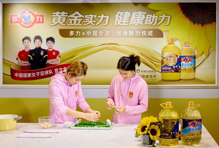 身體健康和營養(yǎng)均衡是職業(yè)運(yùn)動員賽場出色表現(xiàn)的前提之一。足球這項運(yùn)動對運(yùn)動員的心肺功能,臨場反應(yīng)和賽場觀察能力都有著極高的要求。多力黃金3益系列食用油,能夠為來自五湖四海的女足隊員提供多元化的風(fēng)味選擇,滿足她們的味蕾,其中黃金3元素——維A、維E和磷脂,呼吁女足隊員關(guān)注“心、腦、眼”的健康,幫助提高球員賽場表現(xiàn)。早在2011年,多力為滿足社會和消費(fèi)者日益升級的健康需求,歷經(jīng)多年研發(fā),采用獨(dú)創(chuàng)的七重精煉工藝和充氮保鮮技術(shù),以健康、安全、營養(yǎng)的標(biāo)準(zhǔn),推出了第一桶多力黃金3益葵花籽油。在其大獲成功后,多力也將產(chǎn)品健康品質(zhì)不斷升級,又陸續(xù)推出了富含維生素A、維生素E、植物甾醇的多力黃金3 益玉米油;加入低芥酸含量、讓辣更香的多力黃金3益菜籽油,一同組成了多力健康黃金墻產(chǎn)品線。多力黃金3益系列食用油包裝也在陸續(xù)煥新升級,新包裝上黃金3元素信息更加凸顯,增加了元素含量標(biāo)識,同時,以“中國國家女子足球隊官方食用油”進(jìn)行品牌背書,建立健康、高品質(zhì)的品牌形象,鏈接女足的黃金實(shí)力。
