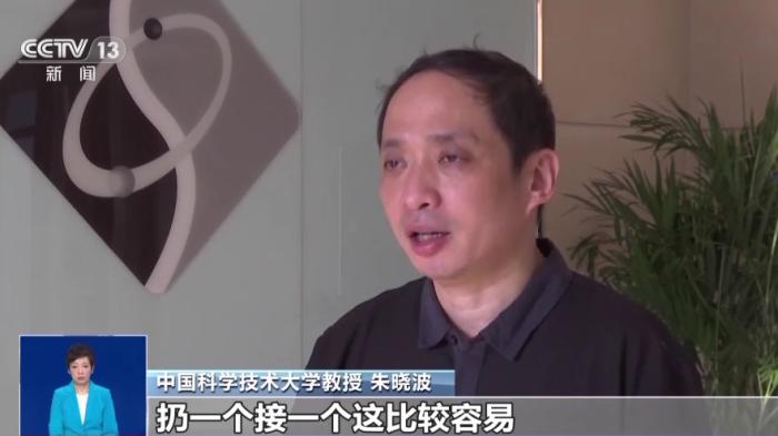 中國科學(xué)技術(shù)大學(xué)教授朱曉波:我們看過耍雜技的,他在天上扔飛盤,扔一個接一個這比較容易,扔兩個一起接就稍微難一點,扔三個就更難了。原來只能扔二十幾個,這已經(jīng)相當(dāng)相當(dāng)難了,因為國際社會學(xué)術(shù)界為這個已經(jīng)努力了很多很多年了。從2000年開始到我們這個成果發(fā)布以前,最多也就做到24個,現(xiàn)在我們一下子可以接51個飛盤,而且都接得穩(wěn)穩(wěn)的。