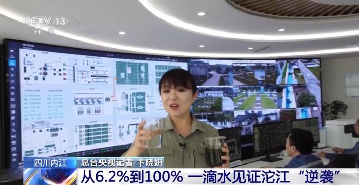 總臺(tái)央視記者卞曉妍:我左手這杯是還沒處理的污水,右手這杯是凈化過的再生水。這杯再生水不光是看著清澈,品質(zhì)也高,在我身后的屏幕上,顯示的是謝家河再生水廠的出水指標(biāo),幾種主要污染物的指標(biāo)在國標(biāo)基礎(chǔ)上又普遍降低了60%。脫胎換骨之后的再生水,即將重新回到城市,三分之一為水庫補(bǔ)水,三分之一澆灌綠地,最后的三分之一,又將去向哪里呢?我們?nèi)タ匆豢础?/p>