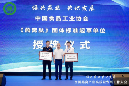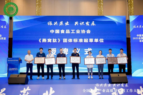圖:燕之屋等8家企業(yè)被授予《燕窩肽》標準牽頭單位、起草單位牌匾