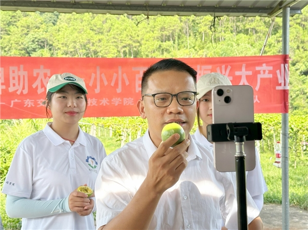 盛夏七月,正是黃金百香果成熟的季節(jié)。在肇慶市廣寧縣木格鎮(zhèn)“黃金百香果”種植基地,“知明行篤”社會實踐隊結(jié)合自身專業(yè)特長與技術(shù)優(yōu)勢,正在開展“小小百香果,振興大產(chǎn)業(yè)”微視頻直播宣傳活動。實踐隊員對果園鮮果進行采摘直切展示,并現(xiàn)場試吃,讓“百香果”新鮮看得見。直播現(xiàn)場如火如荼,線上粉絲熱情似火,互動頻頻。