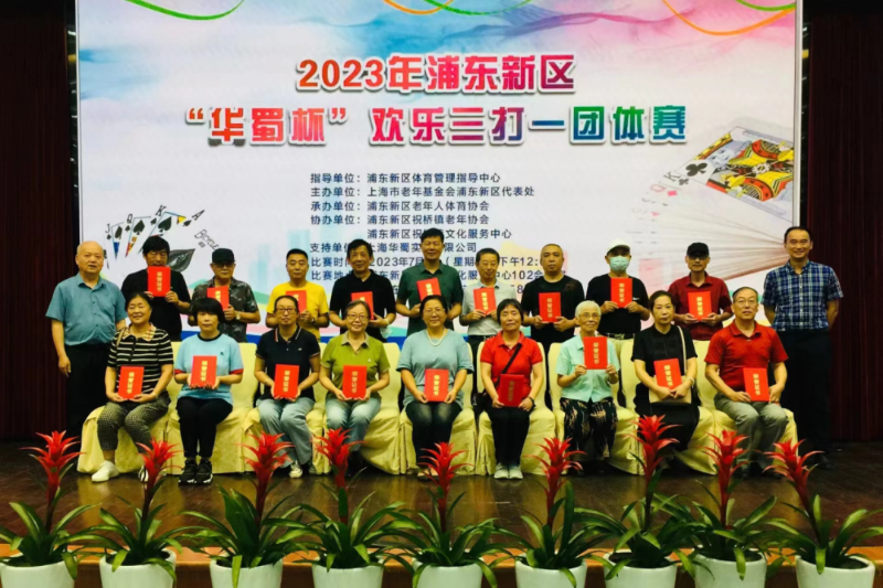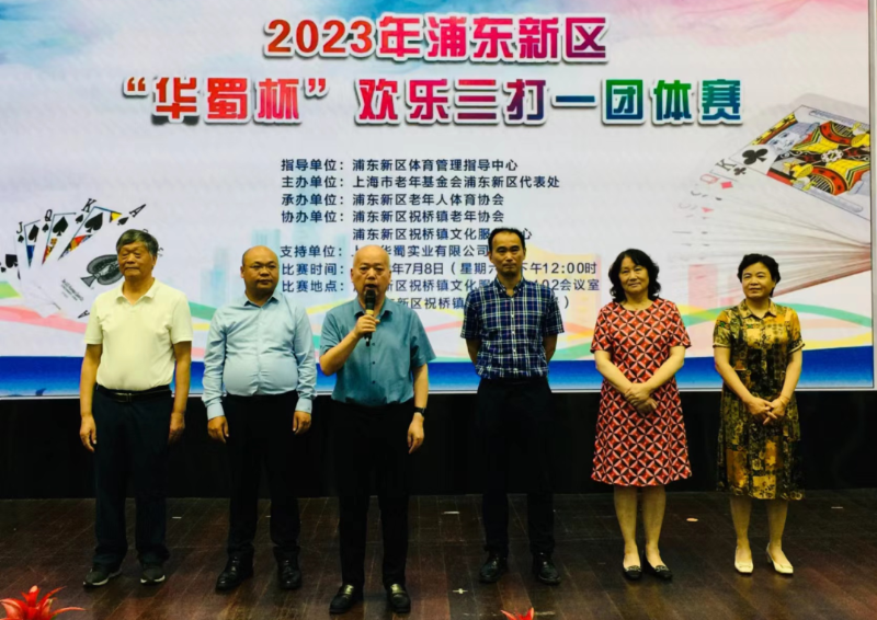 7月8日,由上海市老年基金會浦東新區(qū)代表處主辦,浦東新區(qū)老年人體育協(xié)會承辦,上海華蜀實業(yè)有限公司支持的2023年浦東新區(qū)“華蜀杯”老年人歡樂三打一團體賽在祝橋鎮(zhèn)文化服務(wù)中心舉行。上海市老年基金會浦東新區(qū)代表處秘書長嚴懷中,上海華蜀實業(yè)有限公司董事長鐘曉光,浦東新區(qū)老年人體育協(xié)會會長徐浩、名譽會長楊德海、上海市老年基金會浦東新區(qū)代表處辦公室主任崇明蘭等有關(guān)單位領(lǐng)導出席了開幕儀式。來自浦東各街鎮(zhèn)的36支代表隊近200人參加。比賽現(xiàn)場的氛圍熱烈而友好,本著“重在參與、重在交流、重在快樂”的原則,選手們沉著冷靜,穩(wěn)健發(fā)揮,各得其樂,經(jīng)過激烈的角逐,決出勝負,高東代表隊、大團代表隊、高橋代表隊分別獲得一、二、三名。