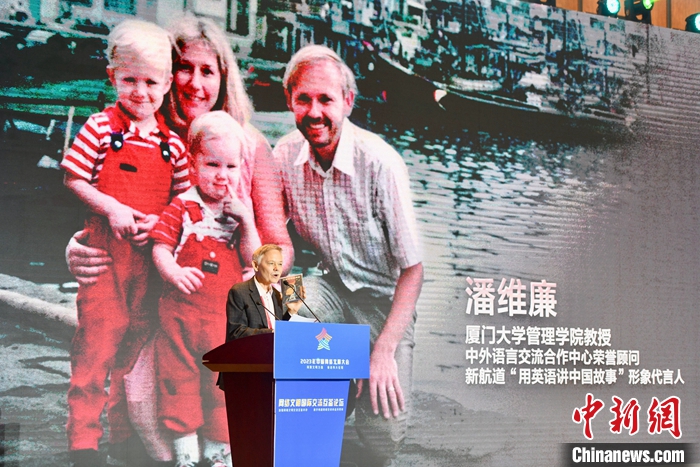 7月18日,2023年中國網(wǎng)絡(luò)文明大會網(wǎng)絡(luò)文明國際交流互鑒論壇在廈門舉辦。圖為廈門大學(xué)美籍教授潘維廉作主題演講。中新社記者 王東明 攝