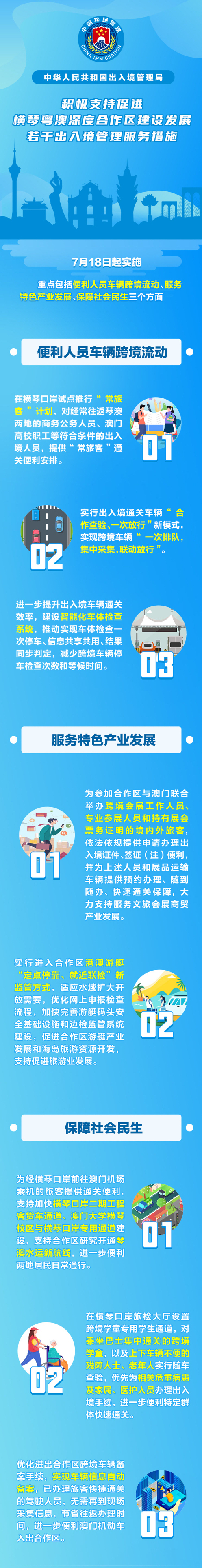 中華人民共和國出入境管理局將持續(xù)深化出入境管理改革創(chuàng)新,嚴(yán)格安全監(jiān)管,嚴(yán)密工作部署,不斷提高中外出入境人員獲得感、幸福感、安全感,服務(wù)促進(jìn)橫琴粵澳深度合作區(qū)建設(shè)發(fā)展聚集新優(yōu)勢、再上新臺階。