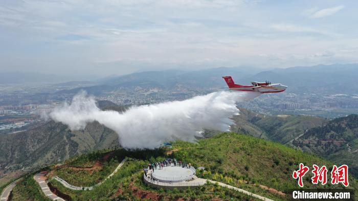 AG600(滅火型)1005架機(jī)在西昌進(jìn)行投水試驗(yàn)。(中國(guó)航空工業(yè)供圖)