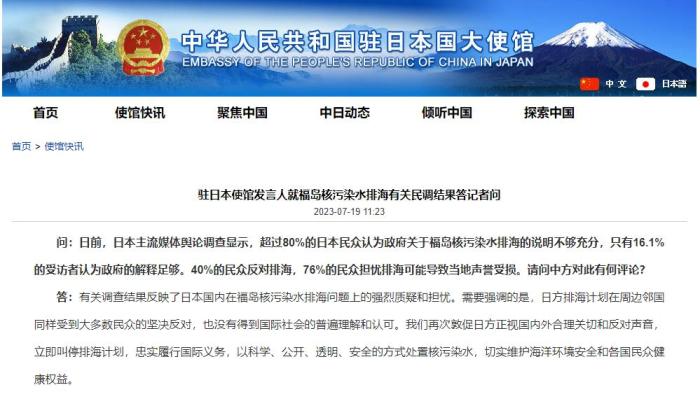 答問(wèn)截圖。來(lái)源:中國(guó)駐日本大使館網(wǎng)站