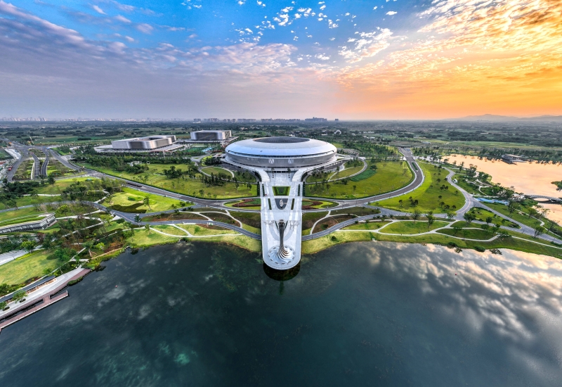 東安湖體育公園主體育場內(nèi)設(shè)高規(guī)格貴賓接待區(qū)及29m高、300m長的弧形觀景平臺,可滿足大型活動開、閉幕式,田徑、足球等體育比賽,以及會展博覽、商業(yè)演出、大型綜藝、旅游觀光等多種功能需求。