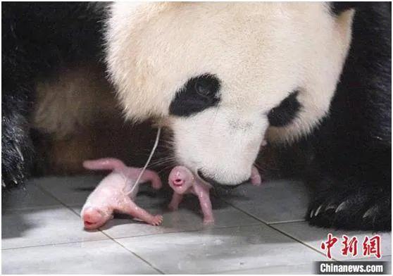當?shù)貢r間2023年7月7日,大熊貓“愛寶”在韓國三星愛寶樂園產(chǎn)下雙胞胎幼崽。圖為“愛寶”與幼崽?!?韓國三星愛寶樂園供圖)