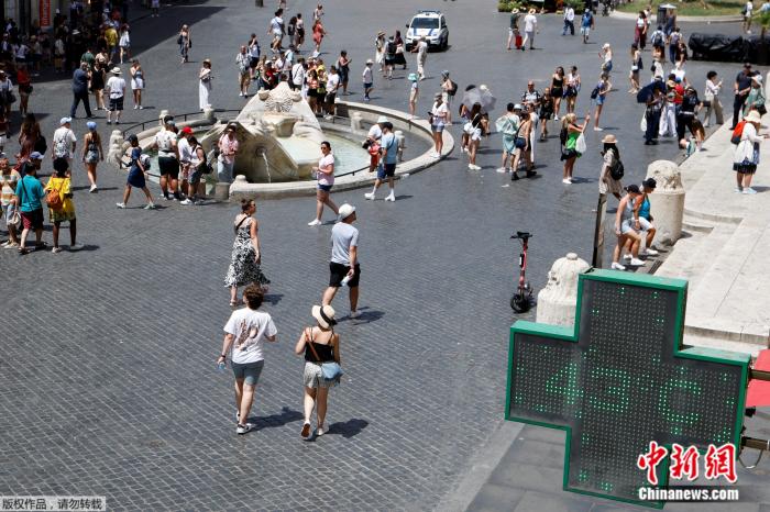 當地時間7月18日,熱浪席卷意大利,人們在羅馬西班牙廣場附近消遣,預計未來幾天氣溫還會上升。
