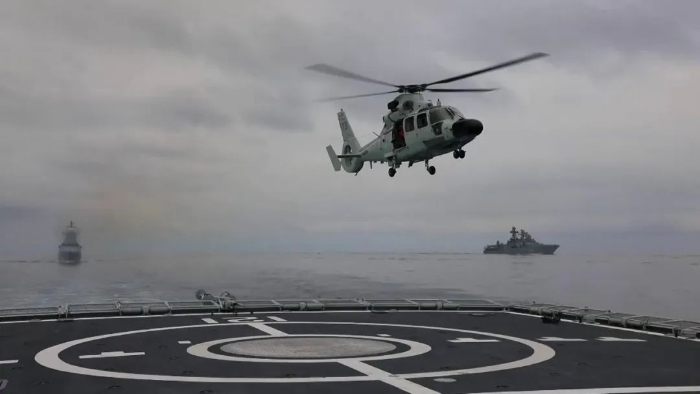 隨著齊齊哈爾艦的艦載直升機(jī)