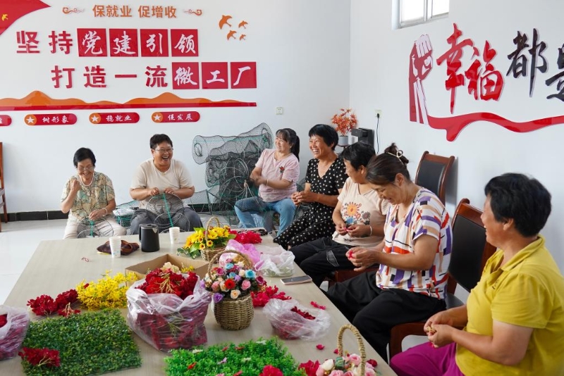 2023年7月18日,山東省無棣縣棣豐街道賈店村居民在微工廠內(nèi)忙碌。目前,棣豐街道已發(fā)展微工廠9家,帶動就業(yè)400余人。新華社記者朱崢 攝