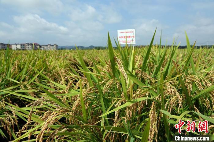 “中科發(fā)早粳1號”等新品系江西上高千畝示范現(xiàn)場,沉甸甸的稻穗顯示豐收在即。中新社記者 孫自法 攝