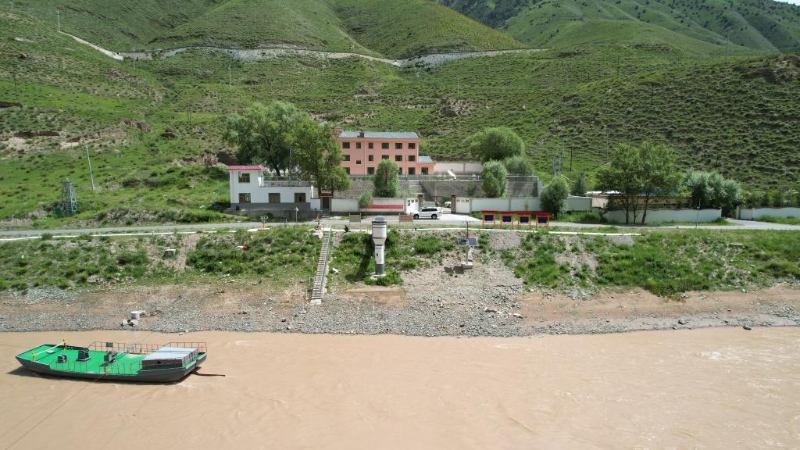 這是7月22日拍攝的通天河直門達水文站(無人機照片)。新華社記者劉詩平 攝
