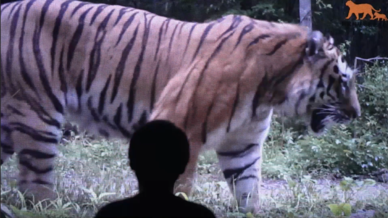 東北虎豹國家公園內(nèi)架設(shè)的紅外相機拍下的野生東北虎。(監(jiān)測畫面)