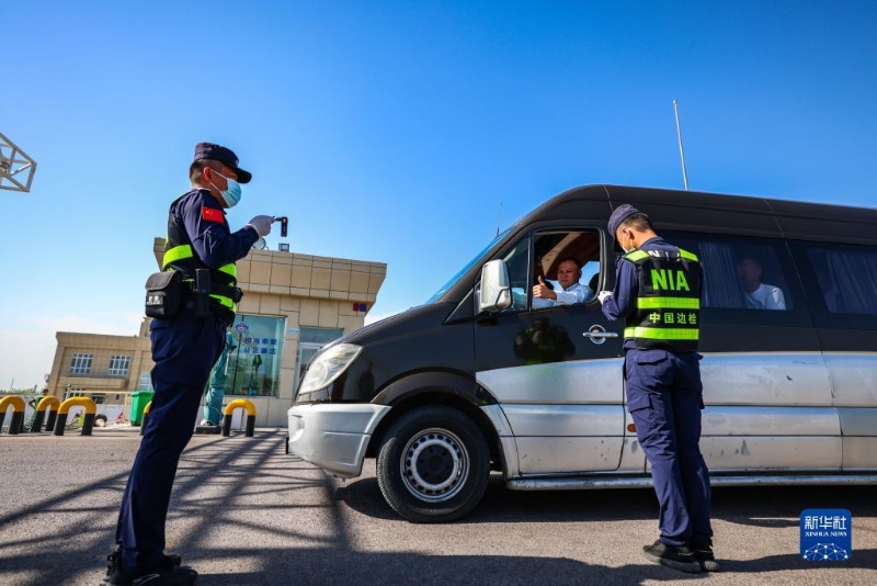 7月21日,霍爾果斯出入境邊防檢查站執(zhí)勤民警在對入境車輛進行查驗。