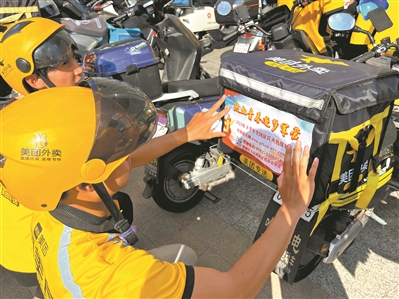 近日,廣東省河源市源城區(qū)人武部發(fā)動轄區(qū)千余名外賣騎手在車身張貼征兵海報,參與征兵宣傳。黃育新攝
