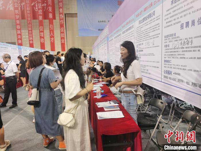 中新網(wǎng)承德7月24日電 (張桂芹 潘超 王萍)23日,京津冀魯蘇勞務協(xié)作簽約儀式暨河北省高校畢業(yè)生就業(yè)服務攻堅行動聯(lián)合招聘會在河北省承德市奧體中心舉辦,來自五省市的200余家企業(yè)現(xiàn)場提供就業(yè)崗位11244個。