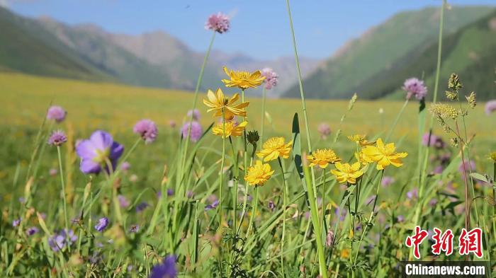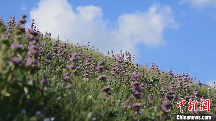 云霧繚繞的碧綠山谷里,各色山花競相綻放、蝶舞蜂飛,漫山遍野的山花與連綿的青山、潺潺的流水、漫步的牛羊以及碧透的藍(lán)天相互映襯,吸引了眾多游客前來縱享自然之美。