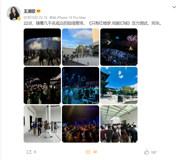 “只有紅樓夢·戲劇幻城”內(nèi)測后王潮歌發(fā)布的微博