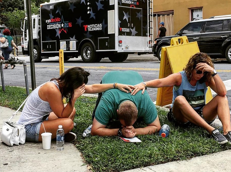當地時間2016年6月12日,美國佛羅里達州奧蘭多市,民眾悼念槍擊案遇難者。