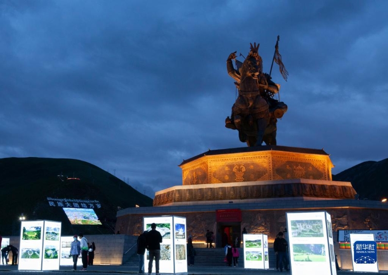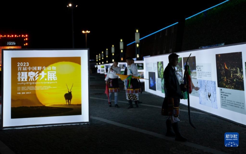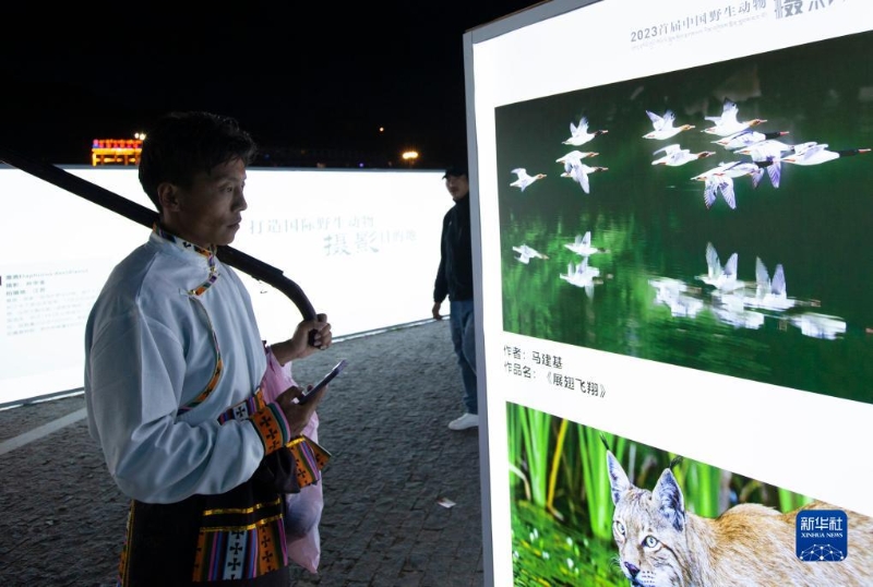 7月24日,人們?cè)谇嗪S駱?shù)格薩爾廣場(chǎng)參觀2023首屆中國(guó)野生動(dòng)物攝影大展。